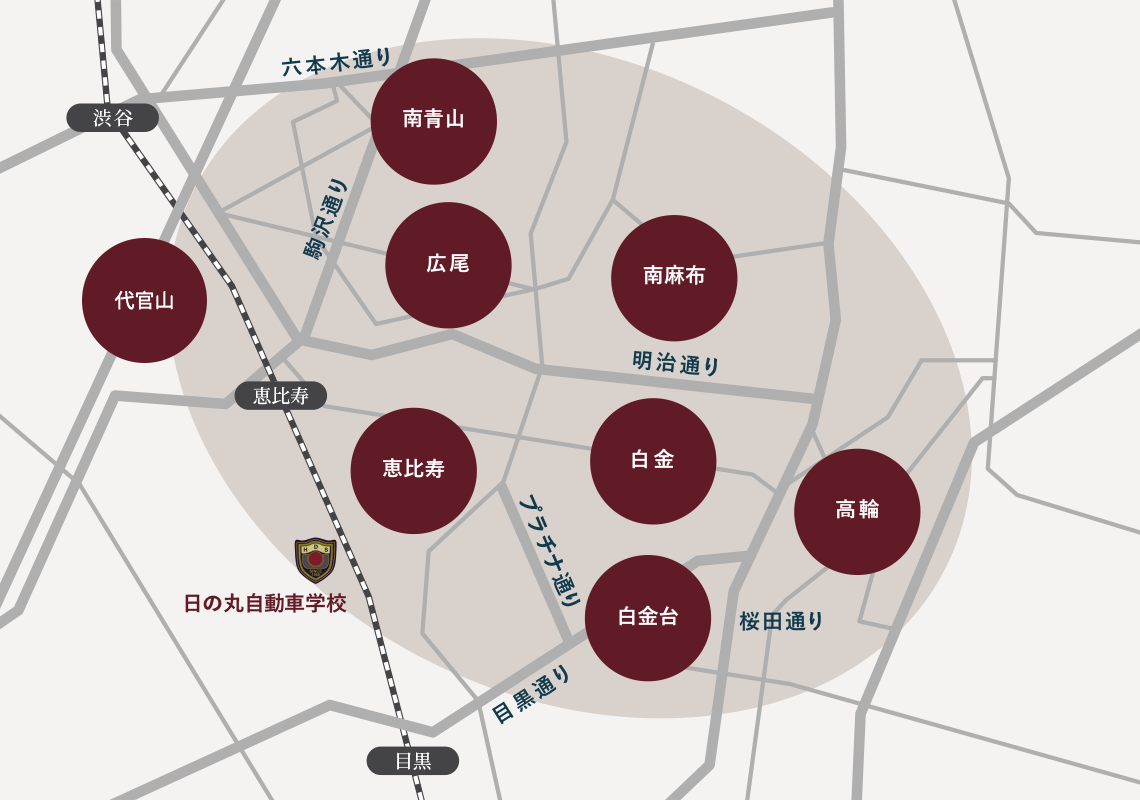 高輪・白金・広尾・渋谷・代官山・麻布・青山など、都心の人気エリアを周る路上教習コースでは、丁寧な指導のもと、難所も巡るので、より実践に即した技術が身に付きます。